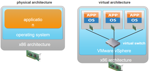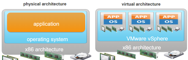 물리적 머신 가상머신 이동 및 복사가 어려움 이동 및 복사가 용이